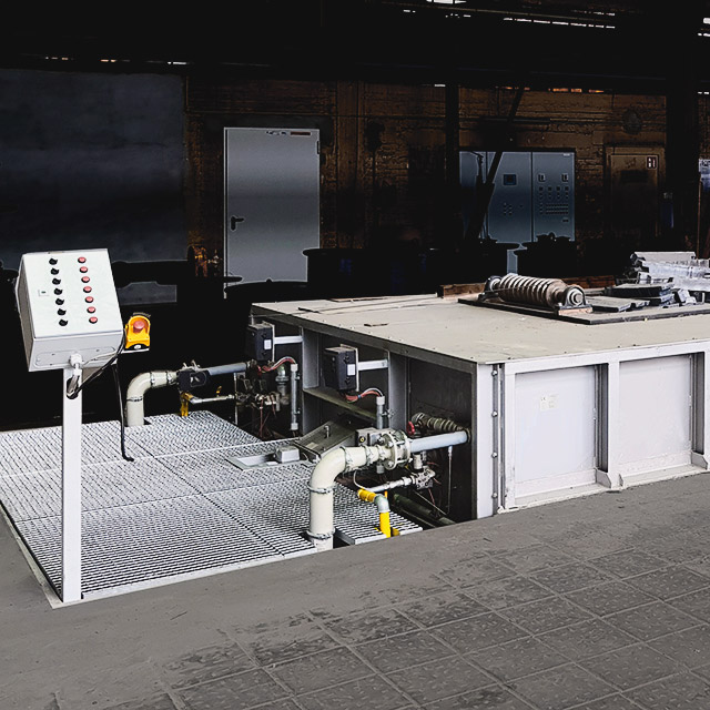 Stahlkonstruktion mit einer keramischen Auskleidung. Die Heißluft des Brenners wird durch Kanäle um den Kessel herumgeführt. Es erfolgt keine direkte Flammen-einwirkung auf den Kessel. Dies führt zu einer erhöhten Standzeit.